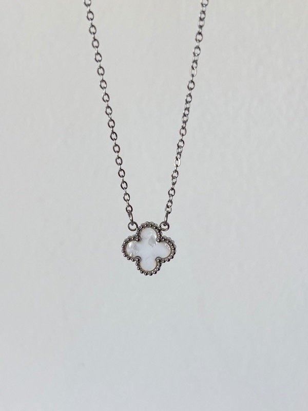 Collar trébol plateado (blanco)