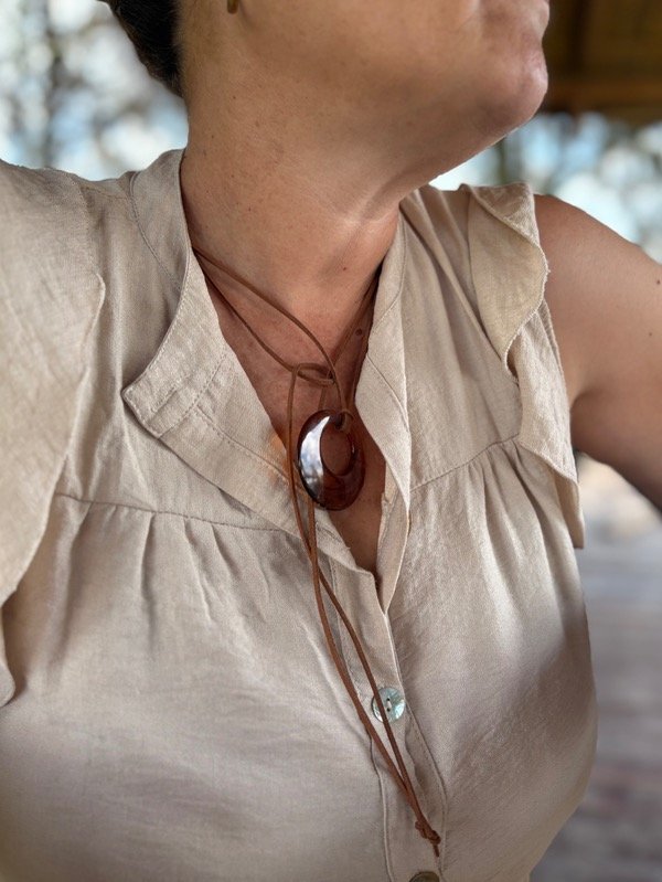 Lazo de 1,5mts., con dije de resina carey.