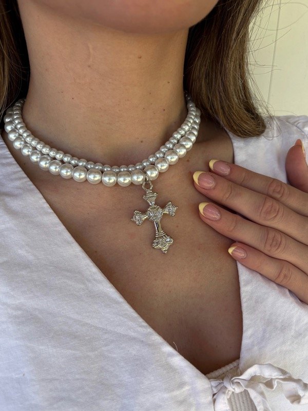 Combina las dos tendencias! Cruces y perlas en uno solo, lo amamos🔥