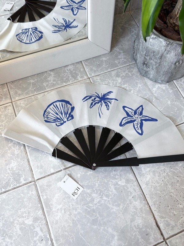 Abanico grande con base de madera.